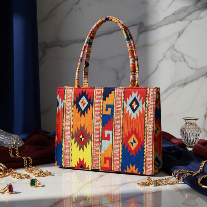 - Vibrant Pattern: Showcasing a captivating kaleidoscope of colors and intricate patterns, this tote is a statement piece.