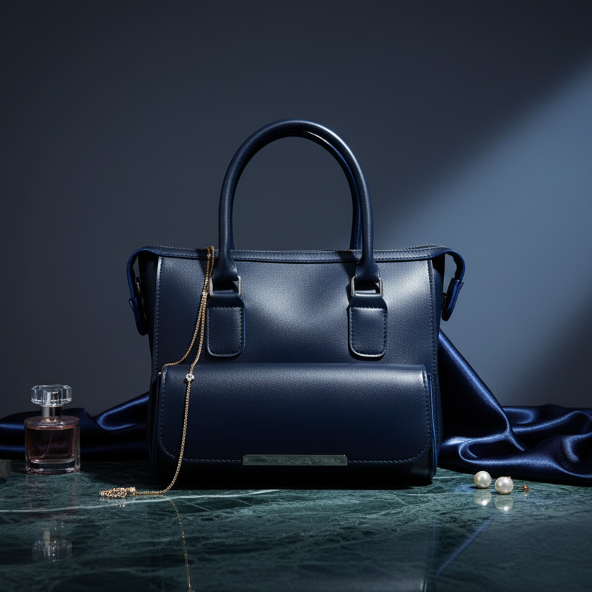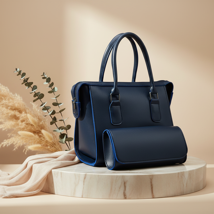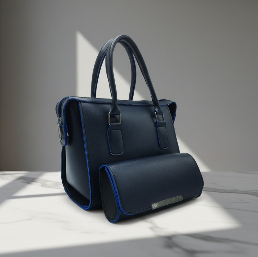 Elevate your style with the Olive Lady’s Handbag in classic navy blue hue. This elegant accessory combines timeless sophistication with modern functionality. Crafted from premium materials, it features a spacious interior, secure zip closure, and adjustable shoulder strap for versatile wear. Whether for work or casual outings, the Olive handbag is your perfect companion, blending style and convenience seamlessly.